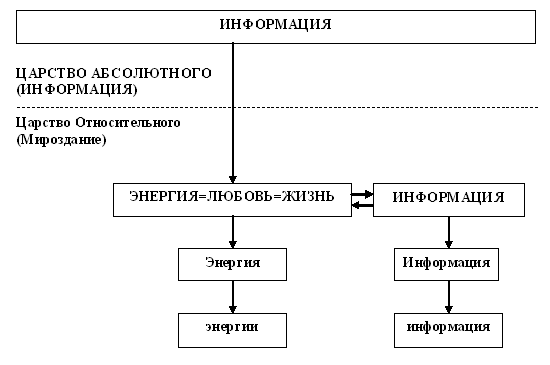 С учетом вышесказанного об ЭНЕРГИИ, Энергии, энергиях, ИНФОРМАЦИИ, Информации и информации, проявленных в Царстве Относительного (Мироздании), схему, представленную при рассмотрении первого Аспекта Божественного Бытия на рис. 2, можно теперь (полностью исключив возможную путаницу) более полно отобразить в следующем виде (см. рис. 5):